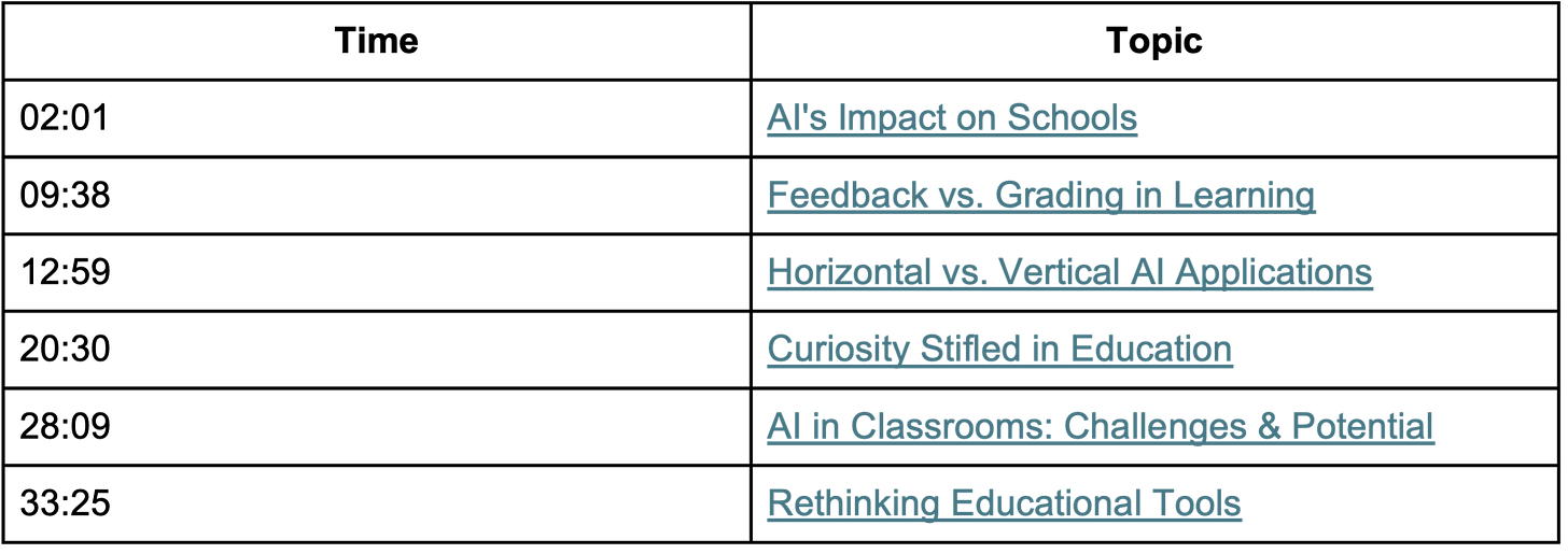 And Laurence doesn’t believe we’ve gotten to the point yet where the tools we have understand the instructional context or have the right data on students. Finally, I thought the conversation around why AI tutoring is still falling short was very telling, particularly Laurence’s implicit observation that a lot of the blame is on a system of education that deprioritizes curiosity, developing self efficacy, and creating the time for true learning, and that it will take a lot to overcome that. Hope you enjoy our conversation on this episode of Class Disrupted.