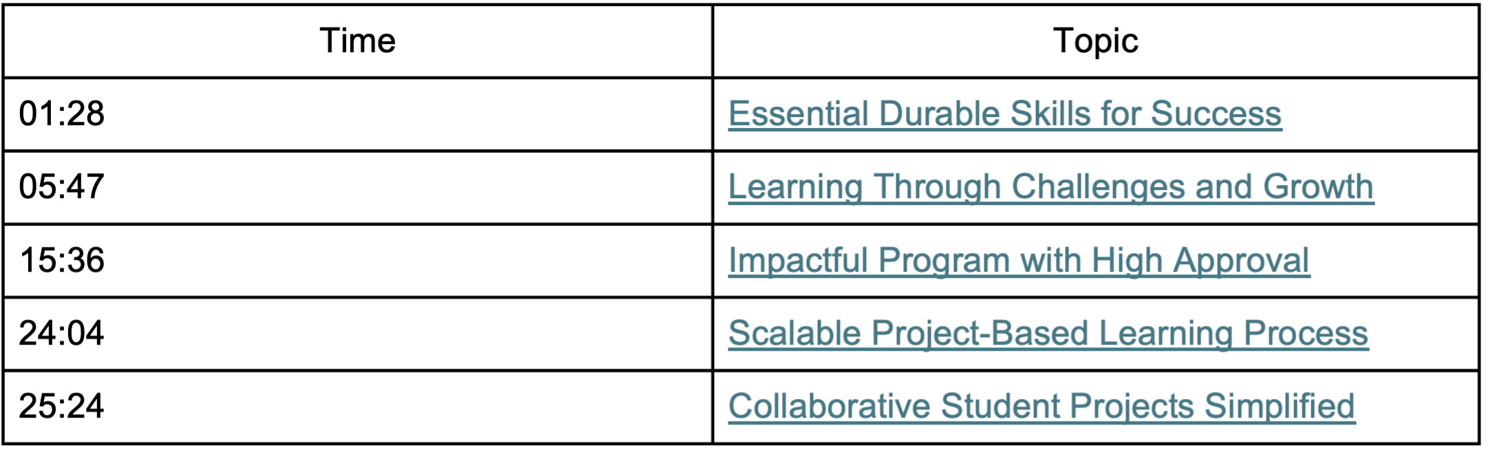 Lynn and Taryn discussed how Cambiar Quest handles this in their partnerships with schools and local businesses to create team-based, class projects that help students develop essential “durable skills” like communication, critical thinking, and collaboration. They shared insights on how the program reduces burden on partnering businesses so that it’s widely accessible, the scaffolding provided for both students and educators, and the strong positive outcomes they’ve seen so far. It’s early in their learning journey as you’ll hear. Highly recommend.