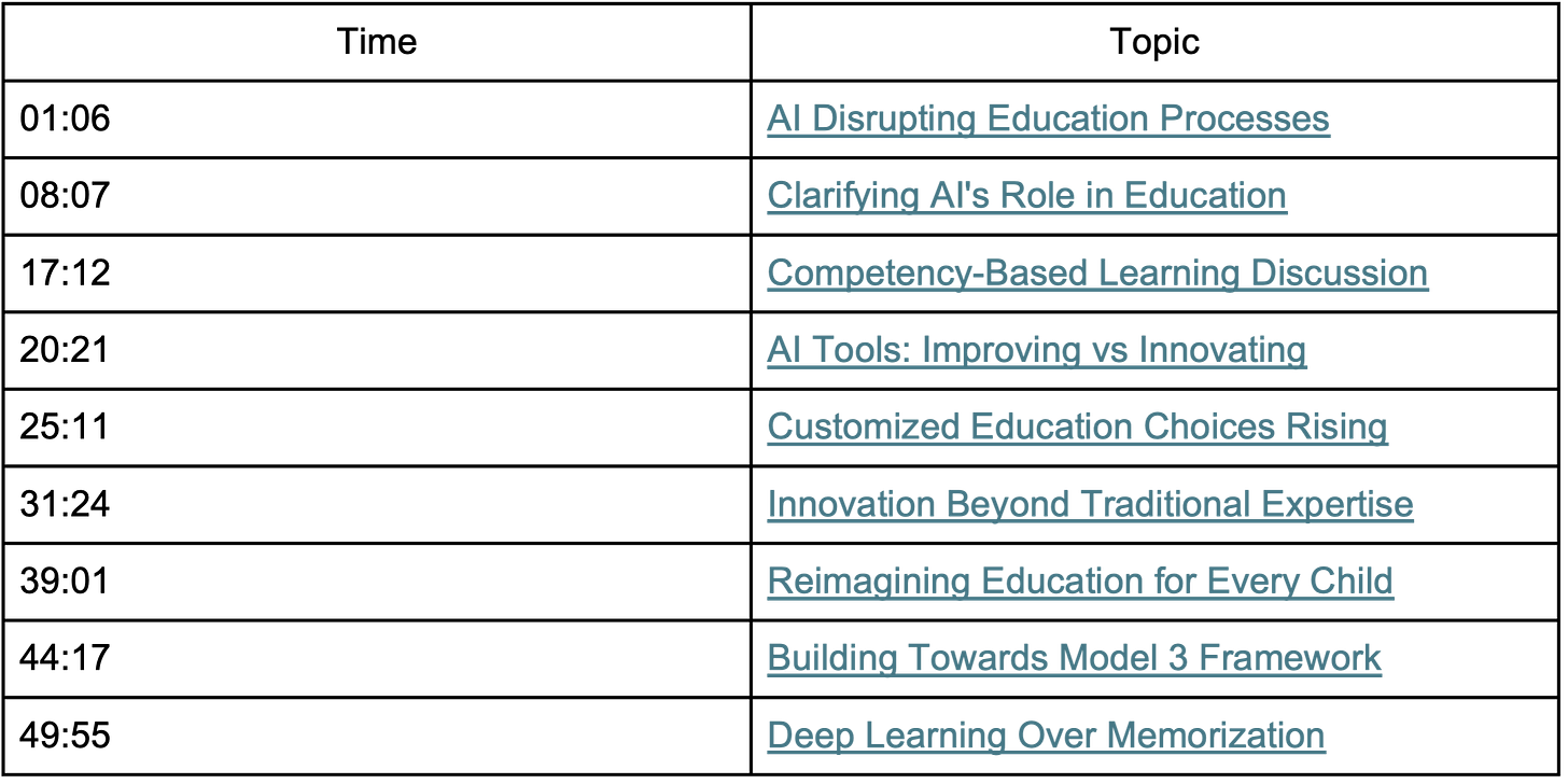 We dove into the evolving role of AI in education and questioned whether AI is truly transforming the system or simply being layered onto outdated structures. We explored a framework of three school models that Diane posed (and I’m still noodling over!)—and discussed the challenges of meaningful innovation amidst existing accountability systems and educational policies. From these models, we then analyzed how one might expect transformational change to occur in K–12 schooling—through industrial schools incrementally changing and evolving over time or, as we both argued, through fundamental migration away from the existing system. I thought this was among the best episodes we’ve recorded, so I’ll be very curious your thoughts.